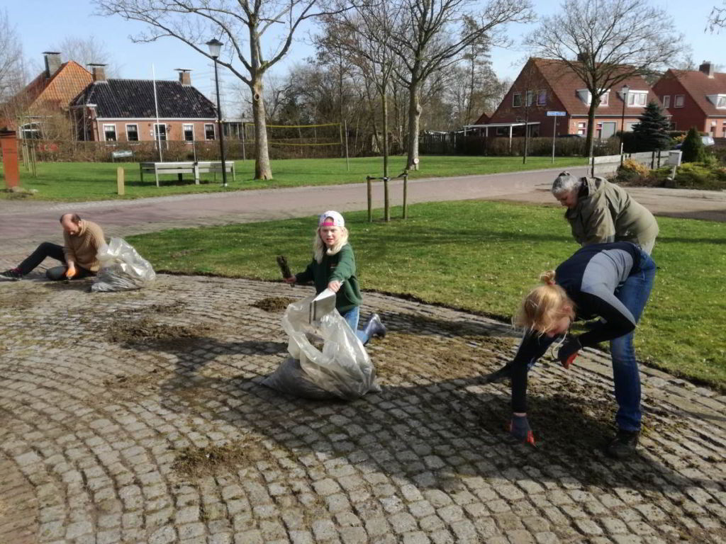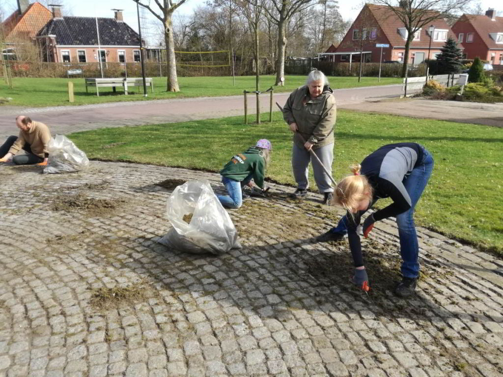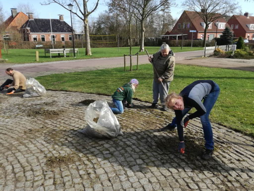 - het dorpspleintje onkruidvrij te maken