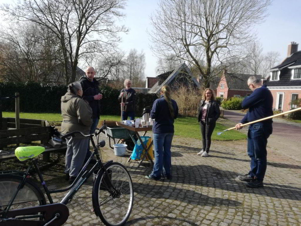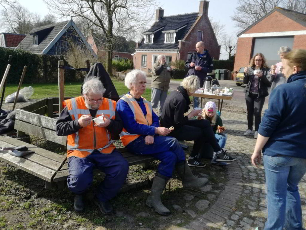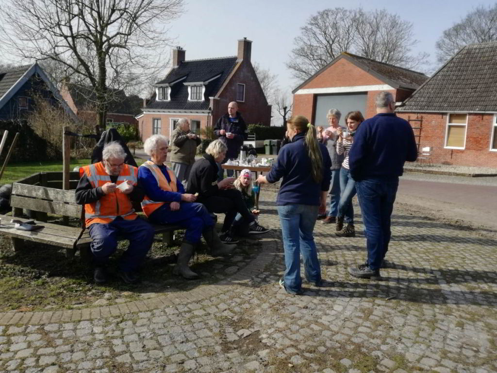 Op deze prachtige lentedag heeft een enthousiaste groep dorpsbewoners de handen uit de mouwen gestoken om: