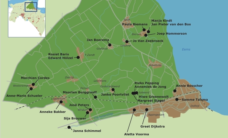 De atelierroute ‘van Eems tot Westeremden’ bestaat sinds 2012. In het mooie gebied van Eems tot Westeremden wonen veel kunstenaars. Bezoekers kunnen genieten van de samenhang van cultuur en natuur. De dorpjes worden verbonden door prachtige weggetjes langs kronkelende maren. Op weg van het ene atelier naar het andere atelier geniet je nog na van wat je net aan kunst gezien hebt en ervaar je de ruimte van het Hoogeland; in de verte zie je al weer de toren van het volgende dorpje.